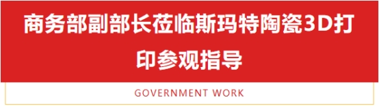 10月27日上午,中国商务部副部长郭婷婷等领导一行莅临斯玛特陶瓷3D打印展位进行参观指导。在现场,他们深入了解了陶瓷3D打印技术在陶瓷行业的应用,并对斯玛特3D陶瓷打印的创新能力和市场竞争力给予高度评价。