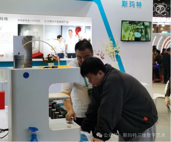 展会现场,斯玛特陶瓷3D打印技术人员还为参观者们展示了陶瓷3D打印技术的陶泥打印制作过程。在演示环节中,参观者们亲眼见证了陶泥到精美陶瓷作品的诞生,感受到了科技创新带来的魅力。