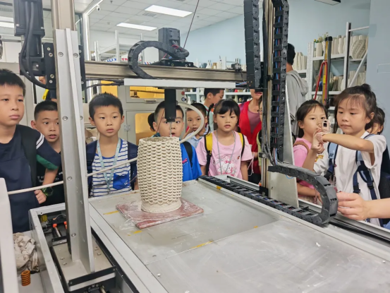 在智能研发中心,数台高精度陶瓷3D打印机正在有条不紊地工作。孩子们惊喜地发现,喷头精准吐出的陶泥如同被施了魔法一般,层层堆叠间逐渐显现出精美的花瓶轮廓。"太不可思议了!""就像在看未来科技电影!"此起彼伏的惊叹声中,孩子们真切地感受到了科技创新的神奇魅力。